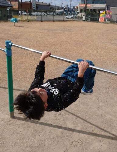 僕は鉄棒で逆上がりに挑戦だ🔥