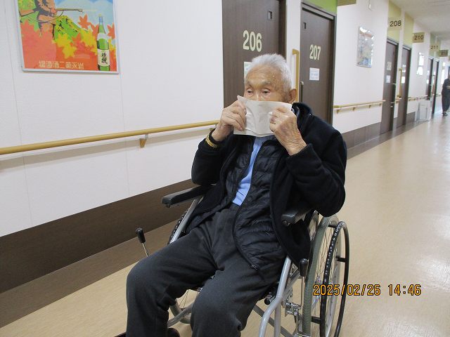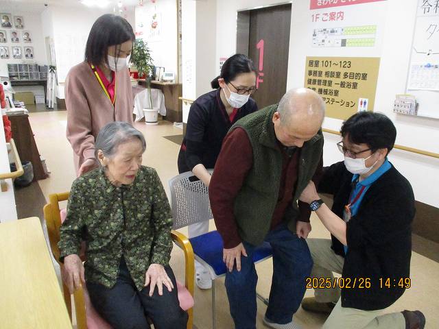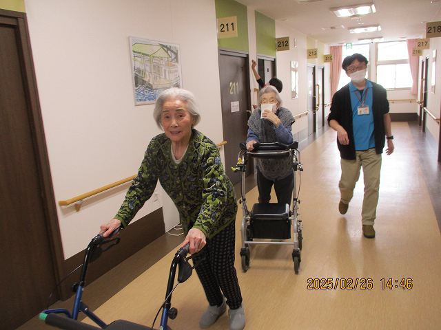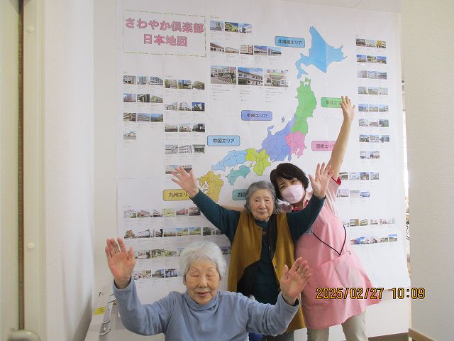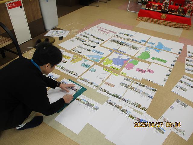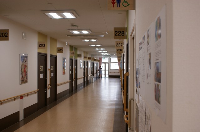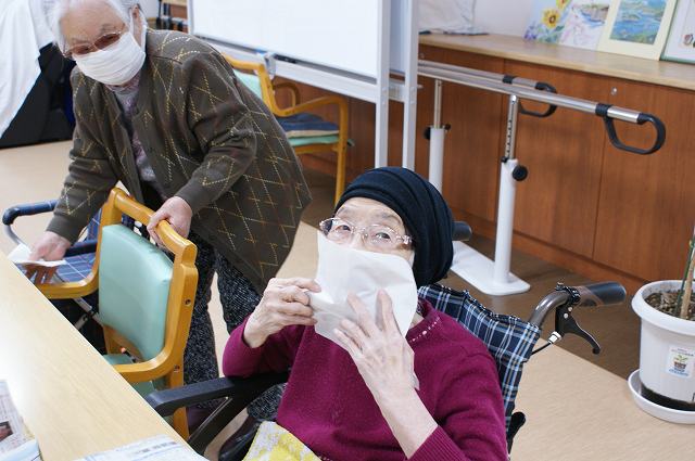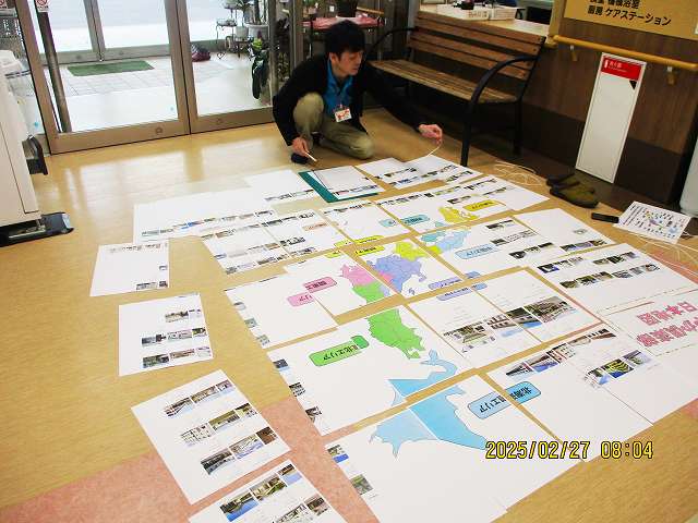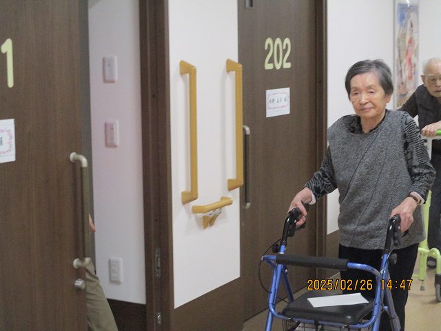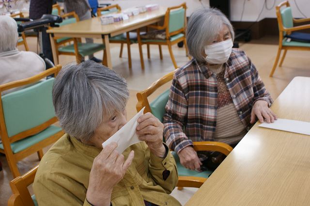 さくらのもりはその人に合わせた避難方法をケアステーションとの全居室のドアに貼ってあります。緑班とそれ以外班に分かれて誘導を行います。避難が終わった居室は付箋を貼ってその居室に誰もいない事をしまします。