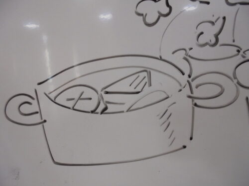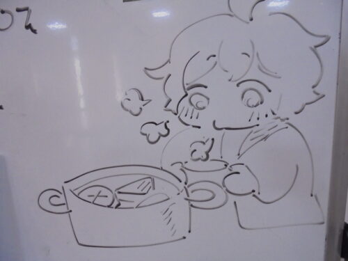 それにちなんでホワイトボードにおでんをフーフーしているイラストを