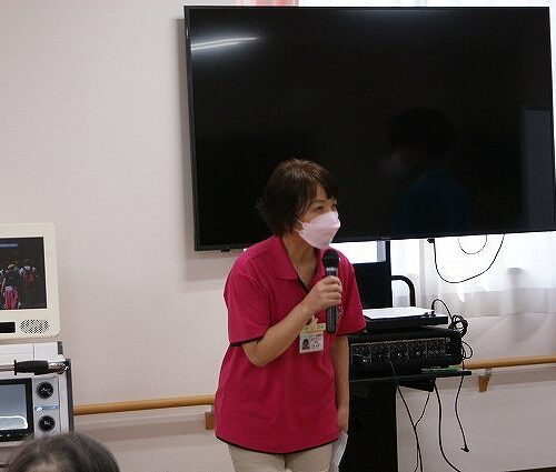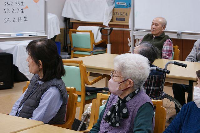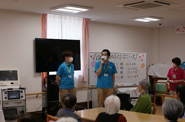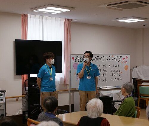 まず初めに施設長の挨拶と恒例の〇月生まれの人はどんな人?です。