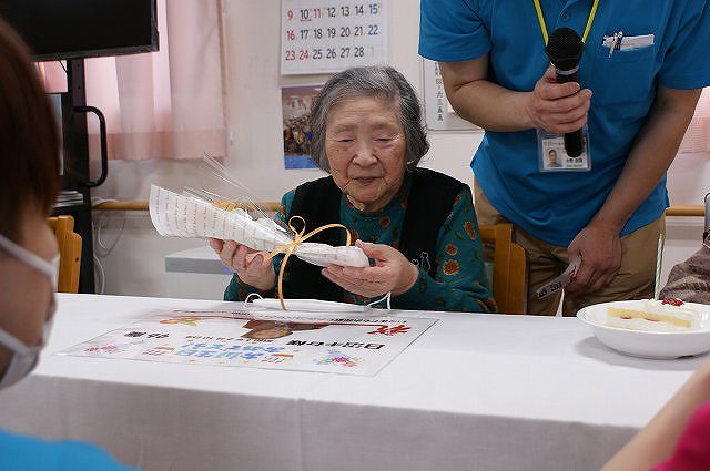 ご紹介の後はお誕生日カード・花束・ケーキの贈呈です。