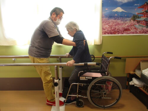 現在平行棒内で立ち上がり訓練を行っています👣👣