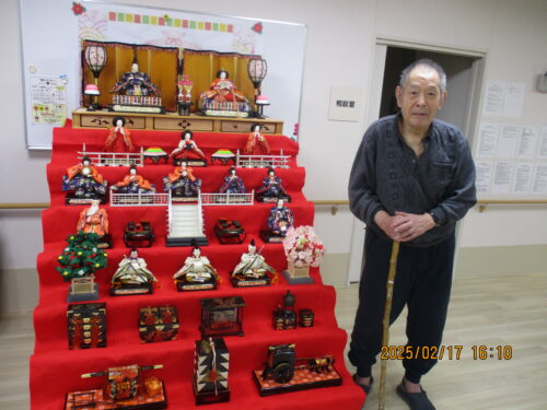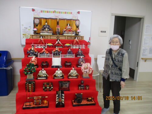 入居者様に降りて頂き、お雛様に1年ぶりのご挨拶をして頂きました(^_-)-☆