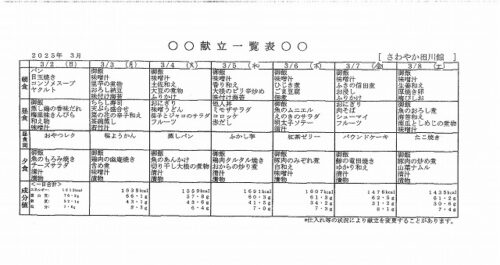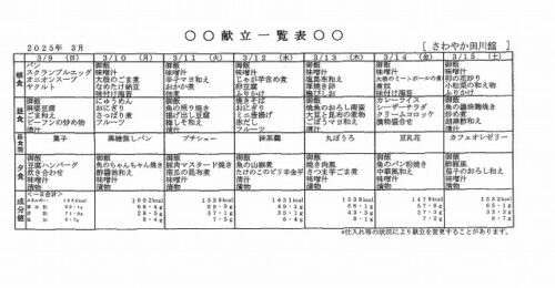 献立のお知らせ 3/2~3/15 [さわやか田川館] 😋