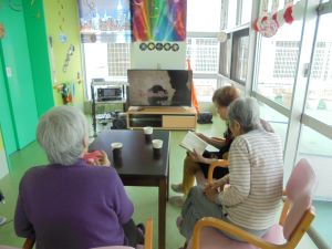 間で、施設長の手作りケーキをいただき女子会となりました。
