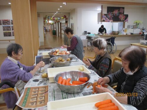 人参の皮はピーラーでリズミカルにサッサッとむいていきます