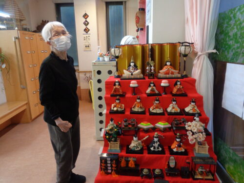 1階で立派なひな壇が設置されていましたので、まずはその前で記念撮影♪