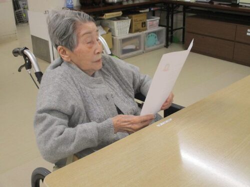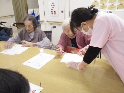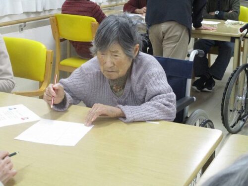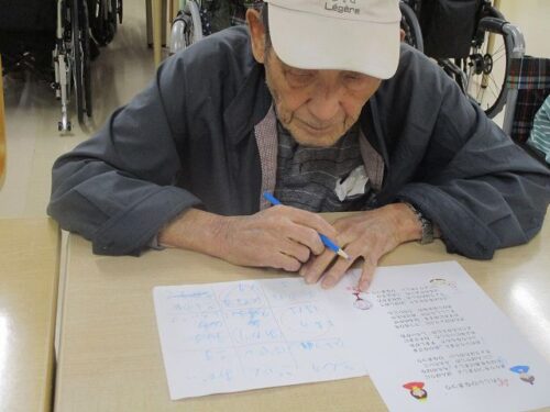 最初にビンゴになった入居者様にはちょっとした景品がプレゼントされました。