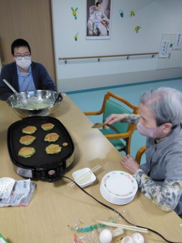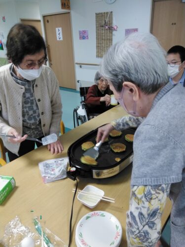 本日は2階にて利用者様とお好み焼きを作って食べましたよ👍👍