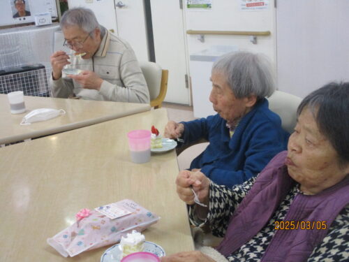 ひな祭りという事で、おやつにはケーキも召し上がって頂きました(*´ω`*)