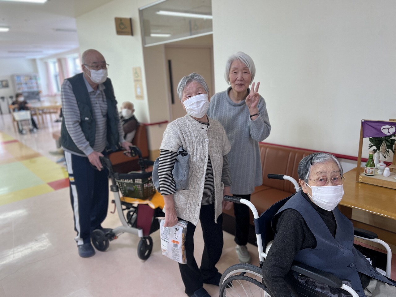 毎日1階にはたくさんの入居者様が遊びに来られます☺入居者様同士声をかけ合い積極的にリハビリを行ったり、訪問販売へ来られたり、仲良くおしゃべりをされたりと、皆様楽しく時間を過ごされています☺☺他フロアの方とも顔見知りになり、笑顔も多く楽しまれています!!