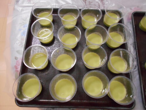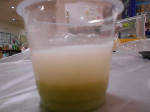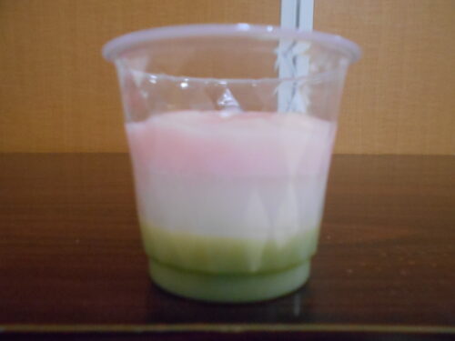 一層目は緑にしました。抹茶オレをお湯に溶かすだけです☺