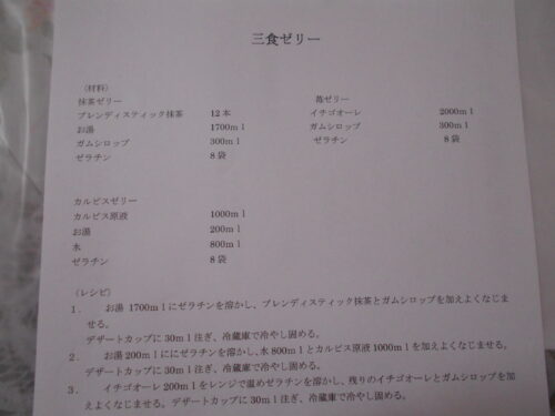 第一弾としておやつに提供した三食ゼリー・通常についてお伝えしま~す。