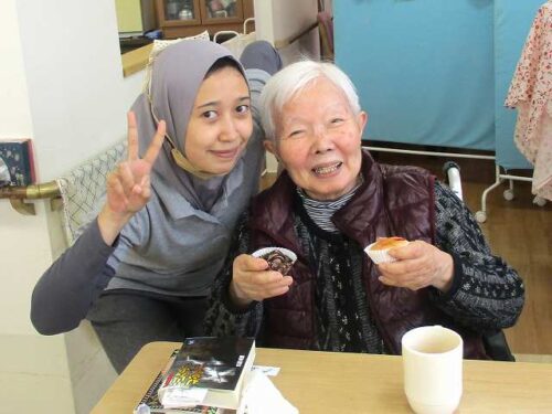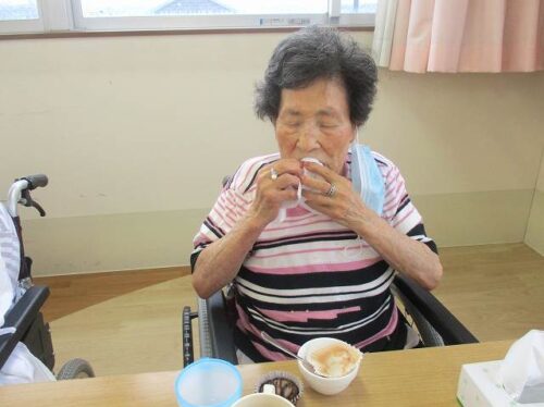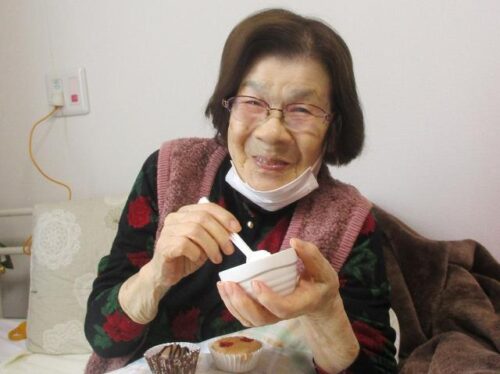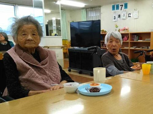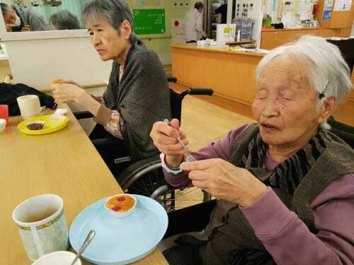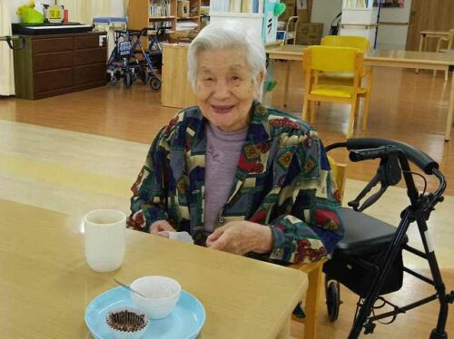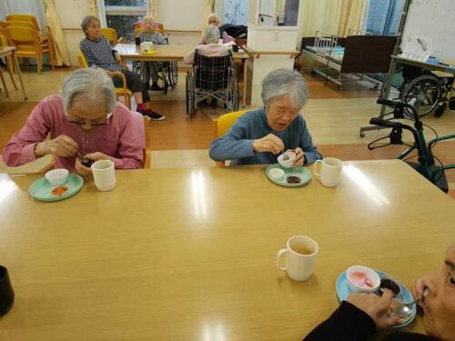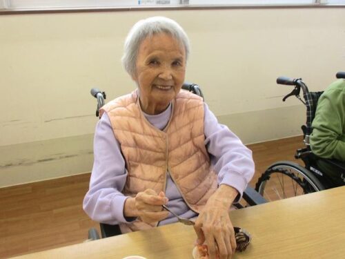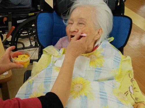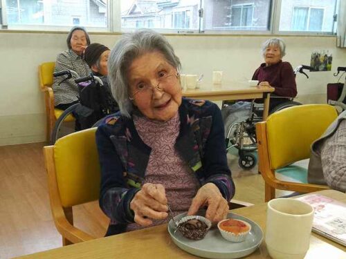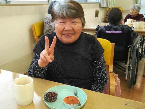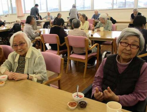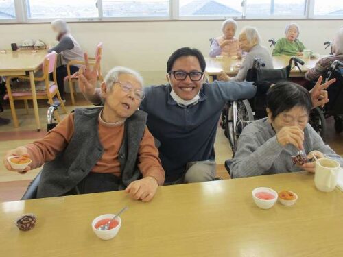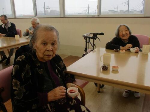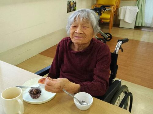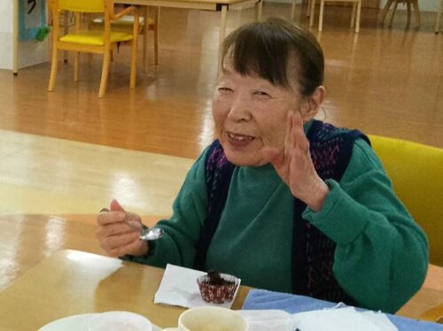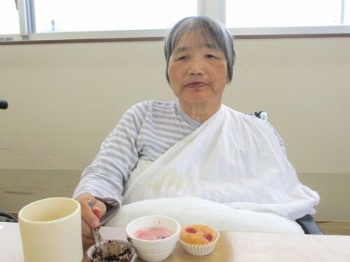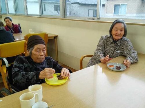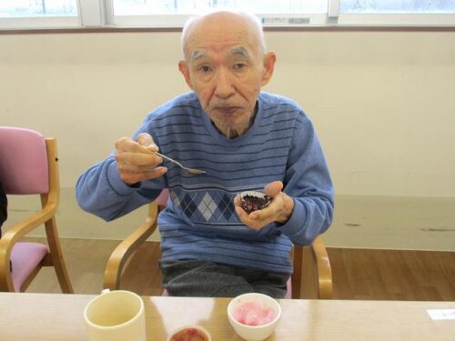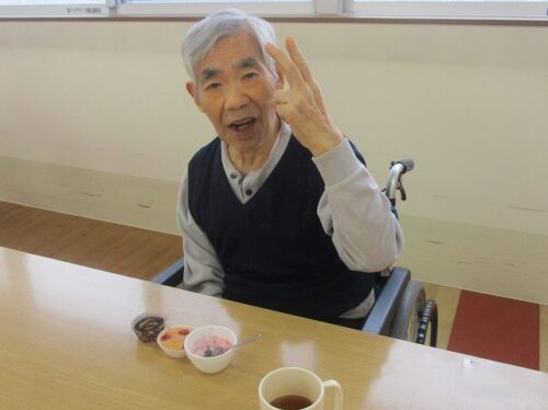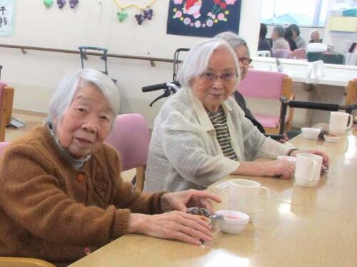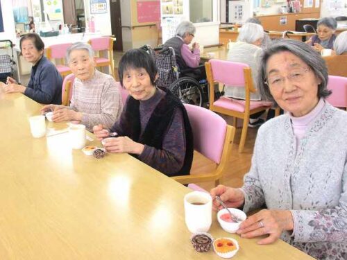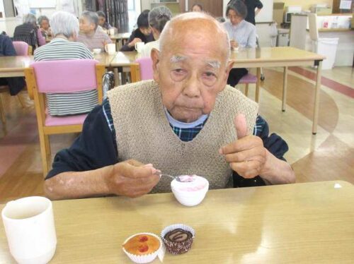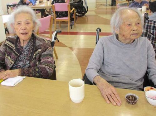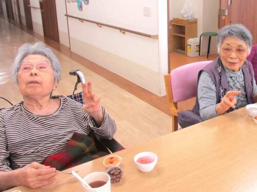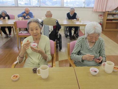 今月3日に提供されたひな祭り🎎のおやつ🍰とご入居者様の様子です