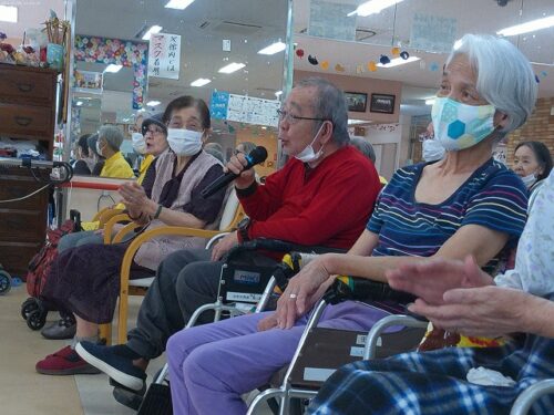 入居者様も手拍子しながら、一緒に歌ったり踊られたり楽しそうです(^^♪