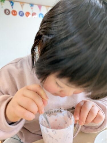 みんな大好きいちごのフルーチェ🍓をみんなで輪になって