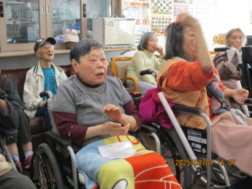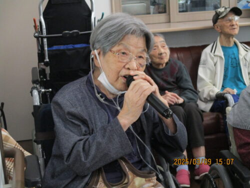 今日はマイクの調子が悪くてあまり歌えなかったと話される入居者様😢