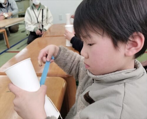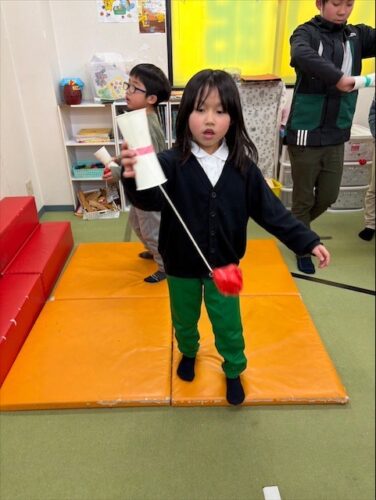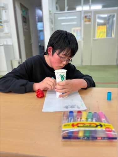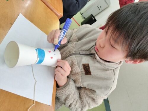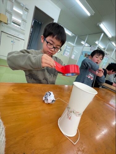 あかいわ館では制作活動で、紙コップけん玉を作りました!