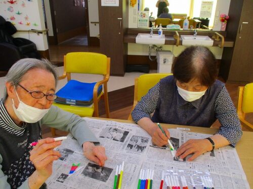 さわやかグループホーム むろらん 作成中です 2024-07-11 2024-07-11 今月の壁飾りを皆様と一緒に作成中です。 出来上がりは後日、報告させていただきます。 根気の必要な作業にも関わらず、最後までお付き合い頂きましてありがとうございます。