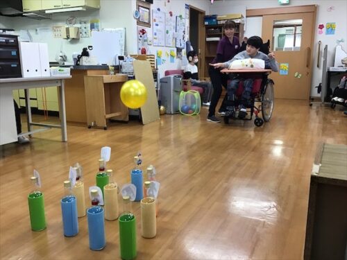 自分で投げるのが難しい利用者様はスタッフと一緒に投げて楽しまれました🎵