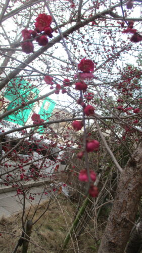「この梅は花が咲いてから葉っぱが付くよ」や