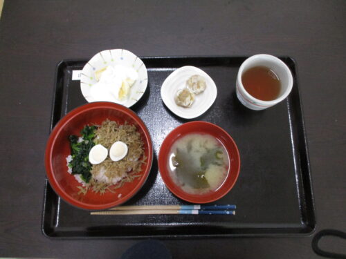 さわやかグループホーム むろらん 新メニューでした♪ 2025-03-11 2025-03-11 皆様に新しいメニュー『しらす丼』の提供させて頂きました♪ あっさりした丼物に舌鼓!(^^)! ペロリと完食でした。 ありがとうございます。