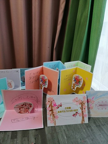 本日の活動では、「卒業おめでとう!」の気持ちを伝えるメッセージカードを作りました。