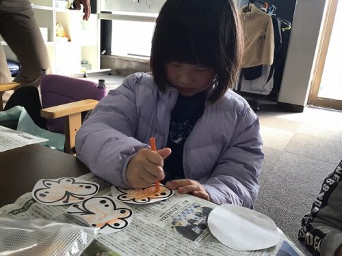 ちょうちょの絵柄に子どもたちに好きなように色を塗ってもらいました💕