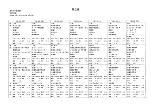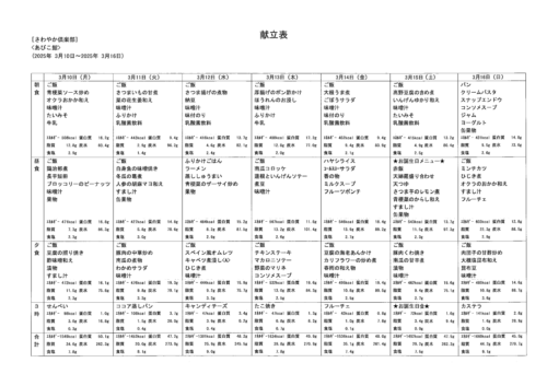 献立表 3/10~3/23まで (さわやかあびこ館 千葉県我孫子市介護付き有料老人ホーム)