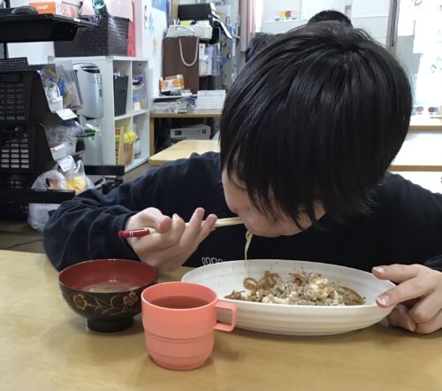 焼きそばに マーボー豆腐をかけて、完成 o(^o^)o