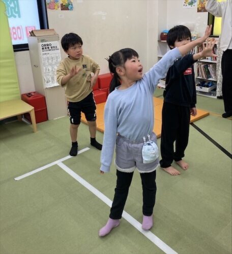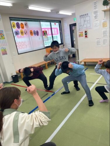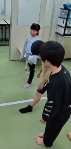 1年生組は最初に「あたまかたひざポン」