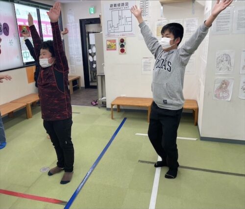 1年生組は「あたまかたひざポン」