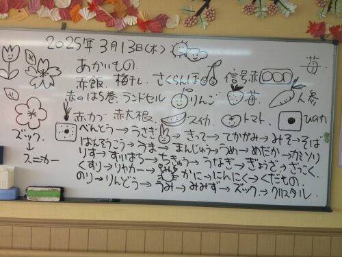 体操後は、赤いものの連想やしりとりで脳トレしました(*^-^*)
