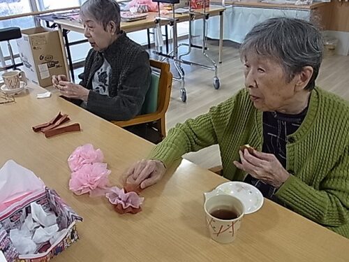 さわやか室蘭弐番館 2階 13日午後の様子♪ 2025-03-14 2025-03-14 皆様こんにちは♪ 昨日の午後の様子をお届けします おやつを食べながら おはながみ製作です 出来上がりが楽しみです