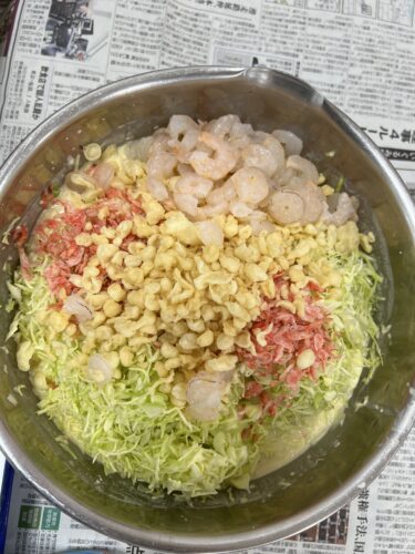 卵とマヨネーズ、塩胡椒したものを流し入れて