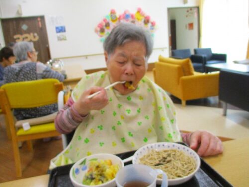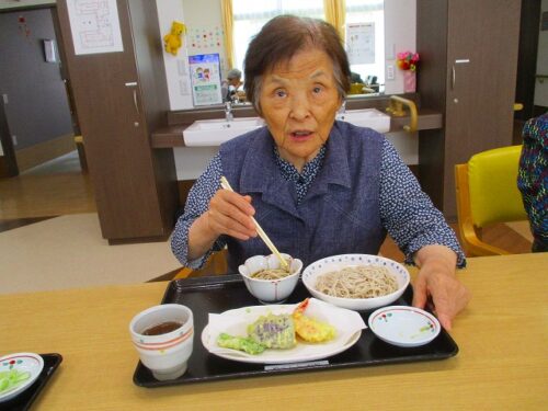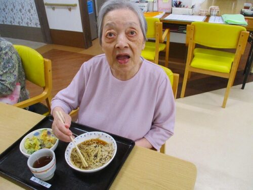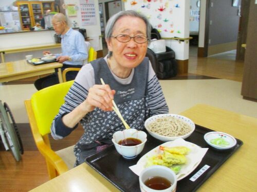 さわやかグループホーム むろらん 手作りです。 2024-07-15 2024-07-15 暑さが増すと食欲が減退する方も多いと思います、皆様には「楽しく・美味しく・安全に」を テーマ提供できるようにしており、本日は天ぷらそばです。 高山さんの作る天ぷらは職員にも好評です。