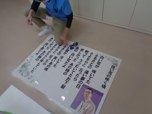 個別のリハビリが終わった後は集団リハビリで使用する歌詞カードの作成をする姿が、、、