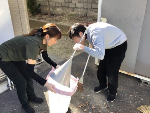 施設周辺のゴミ拾いや、落ち葉集めを主に行っています。