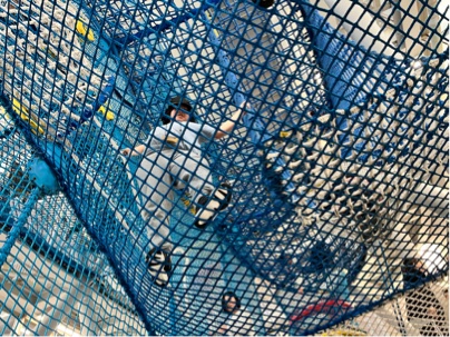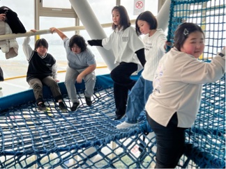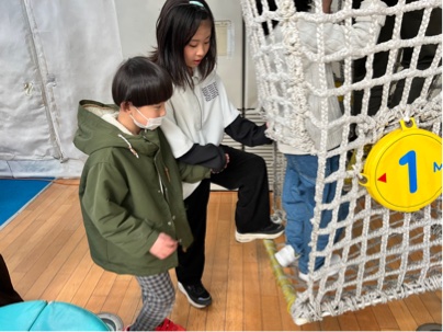 網の目は、児童さん達の足がギリ入らないくらいなので