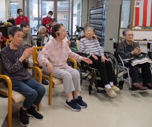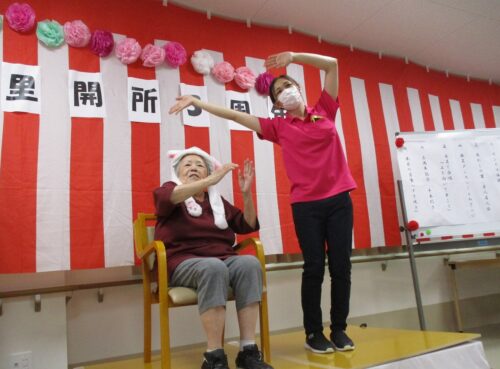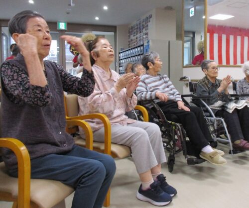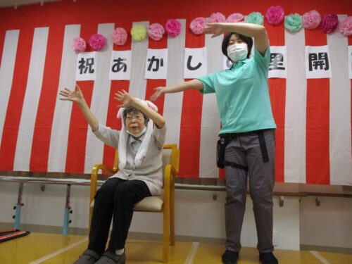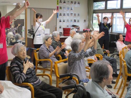 入居者様と職員で、ズンドコ節の曲に合わせて、体操をしました。