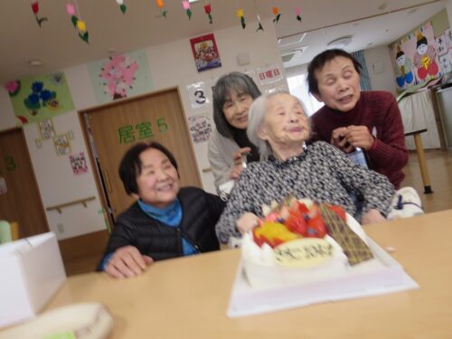 すいせんユニットの様子 【皆様とご一緒に104歳のお誕生日】