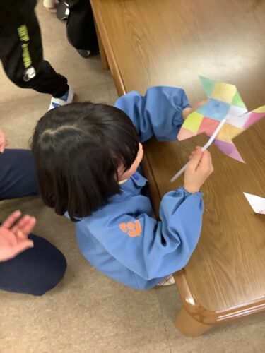 みんなでかざぐるまを作って遊びました✂️