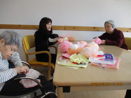 飾りつけの花を作るのを皆様に手伝っていただきました!