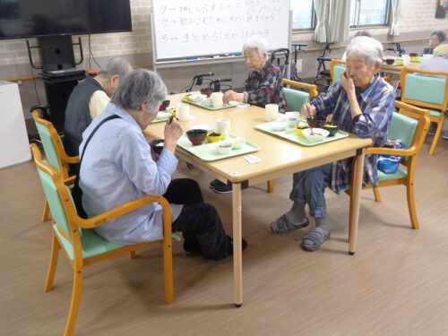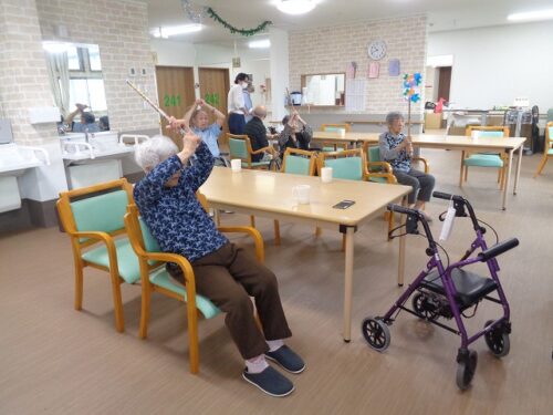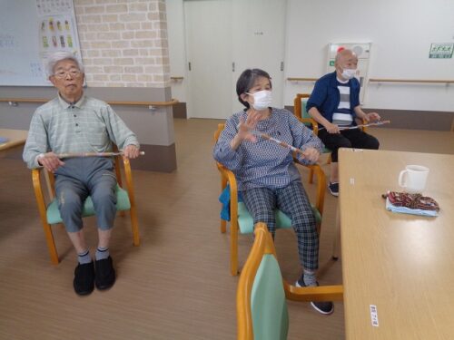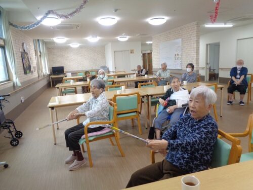 雨でも皆様元気に体操です(o゚v゚)ノ
