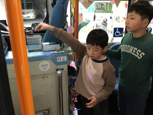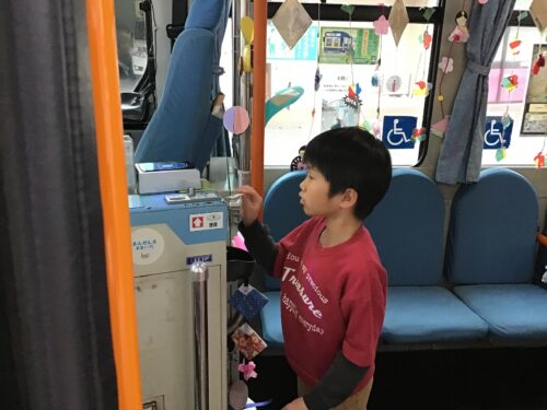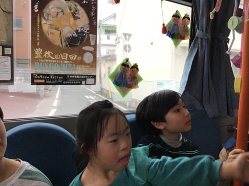 本日乗車するバスは、みんなで作ったひな制作が飾っている特別のバスになります!!