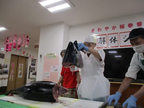 今日はマグロの解体ショーと運営懇談会の日でした。