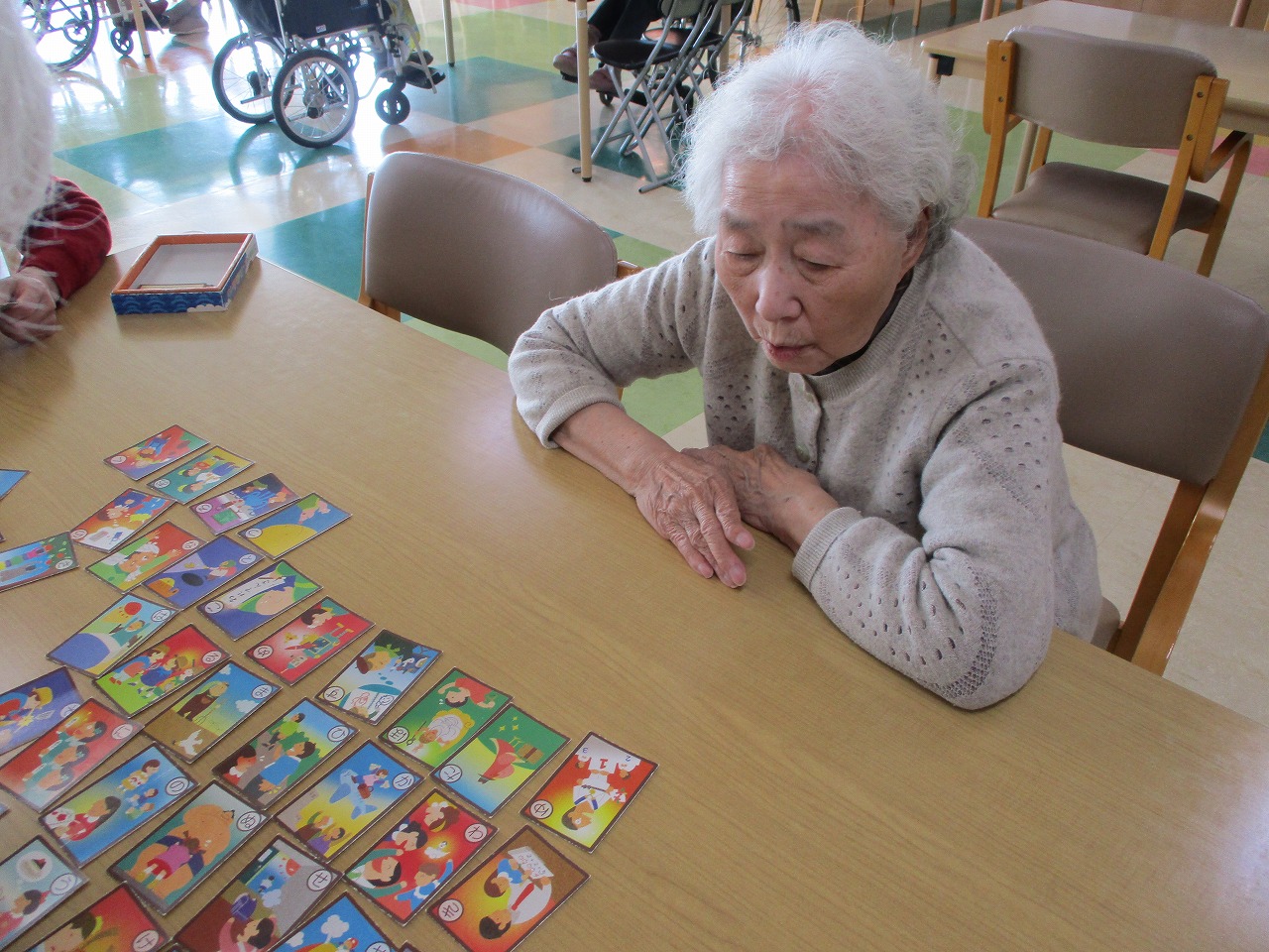 午後、2階フロアではカルタ取りをされています☺ワイワイと楽しい声が聞こえていました🎵