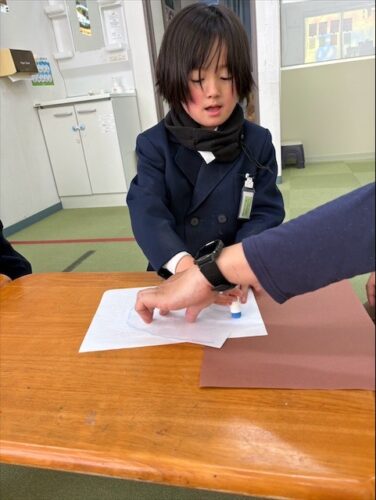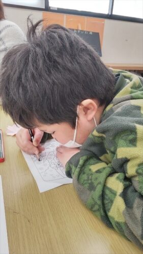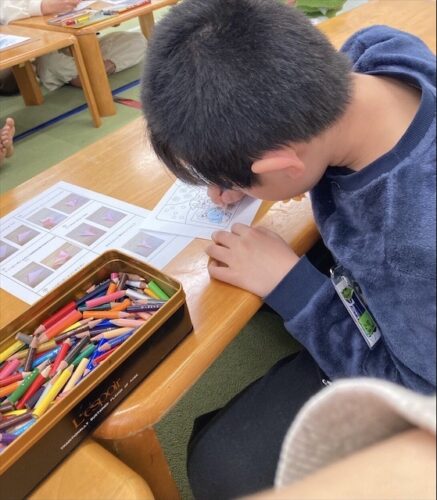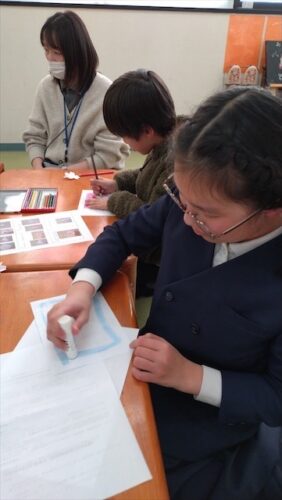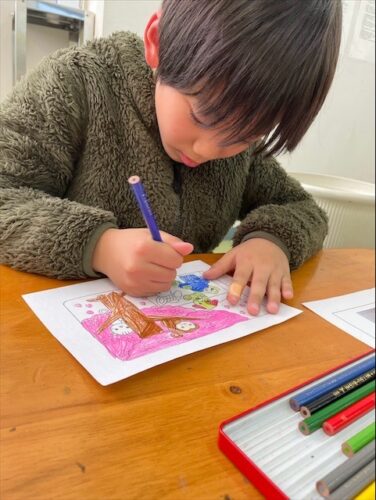 最後に、塗り絵、切り絵、カレンダーを貼り付けたら、