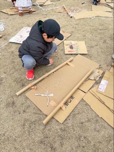他にも、ダンボールで芝滑りをしたり、電車を眺めたり、遊具で遊んだりなど