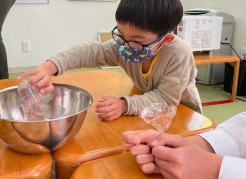 チョコレートを生地の中に入れたら、電子レンジで温めます